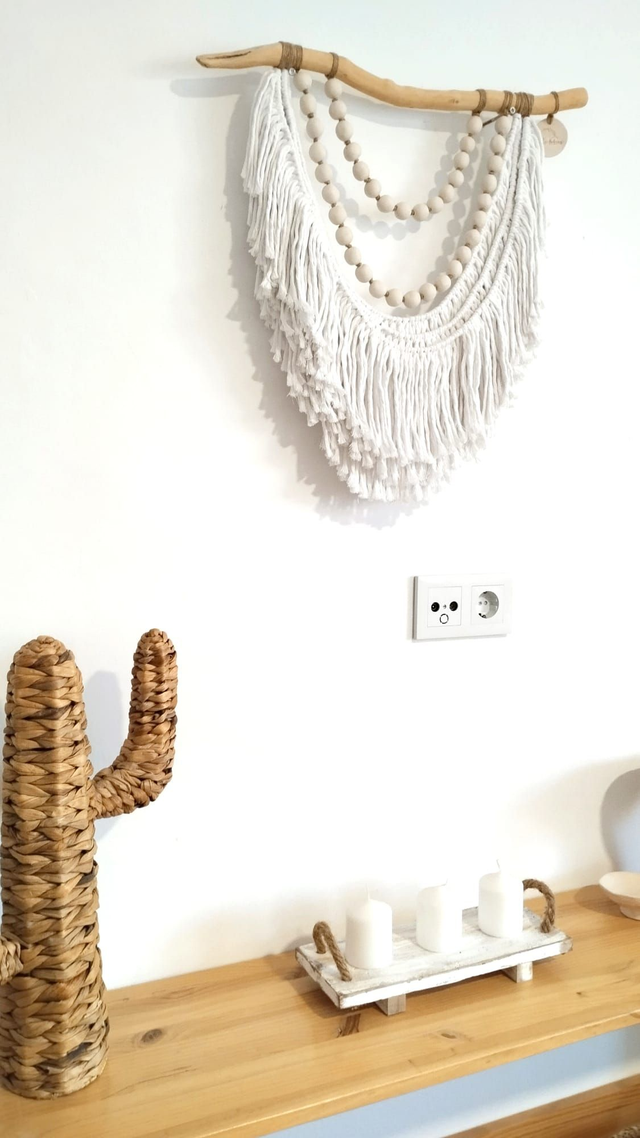 Perfecta para colgar en tu rincón favorito, en la pared o simplemente para añadir un toque de naturaleza y sofisticación a cualquier espacio Descubre la magia de lo artesanal y lleva la firma de Santakana a tu hogar.
