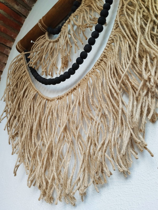 Tapiz Timanfaya Tapiz hecho a mano en yute y bolitas de cerámica. La medida es ancho por largo. Deja volar tu imaginación creando un sinfín de combinaciones con la Decoración de Pared y los elementos decorativos que te ofrecemos desde Santakana. Acompáñalo con espejos, cuadros, láminas y consigue una pared llena de personalidad que atraerá todas las miradas.